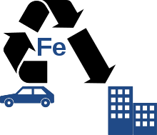 다운사이클링(다운사이클링, 캐스케이딩) 원래 재료보다 품질과 기능이 떨어집니다. 쓰레기두번째 재활용하는 것이다(하나)(2) 이는 2차 금속의 트램프 요소가 축적되어 고부가가치 응용 분야에서 제외될 수 있기 때문입니다. 예를 들어 수명이 다한 차량의 철 스크랩은 종종 전선의 구리와 코팅의 주석으로 오염됩니다.(삼)(4) 이 오염된 금속 스크랩은 자동차 강재 사양을 충족하지 못하고 주로 건설 산업에서 사용되는 2차 강을 산출합니다.(5)