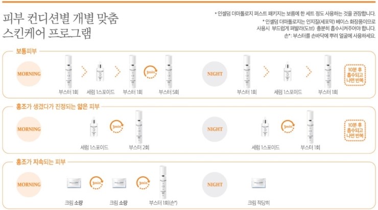 다음은 Incellderm 사용 순서의 핵심입니다! 더마톨로지 퍼스트 패키지라는 제품입니다. 어렵고 까다롭다는 독일 더마 테스트에서 EXCELLENT 5 STAR를 받은 부스터 세럼 패키지입니다. 처음부터 피부를 조여주는 화장품입니다. , Centella Asiatica 잎 추출물이 주성분으로 피부를 밝게하는 열쇠입니다. 부스터 -> 세럼 -> 부스터는 위의 1-3 단계를 따라 트리트먼트를 반복하는 것이 좋습니다.