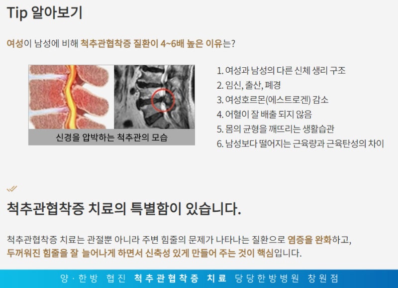 오늘은 척추관 협착증 수술 후 재활 치료 때문에 창원 마산 진해 지역에서 재활 병원을 찾아갈 때의 참고 사항을 설명합니다.특정하고 재활 병원을 추천하기 어려운 점이 있습니다.창원 마산 진해 재활 병원에 대한 만족도는 개인차가 크기 때문에, 몇가지 참고 사항을 알린 것이 좋다고 판단했습니다.척추관 협착증 수술 후 재활 치료 과정을 먼저 설명합니다.척추관 협착증은 운동 부족의 자세의 문제 등 여러 원인에서 나타납니다.증상에 따라서는 따로 치료까지 받지 않고 휴식하면서 회복될 경우도 있지만, 보행 장애나 일상 생활에도 지장을 받게 되고 치료를 필요로 하는 경우도 있습니다.치료 방법으로는 물리 치료, 재활 운동 요법, 주사 요법 등 여러 방법이 있습니다.여러가지 방법이 있습니다.재활의 관점에서 설명하자면 가장 중요한 것은 규칙적인 운동과 자세 교정입니다.운동도 자세 운동 강도 프로그램 등을 체크해야 합니다.잘못된 운동은 협착증을 더 나쁘게 합니다.단순히 운동만 열심히 하는 것이 아니라 일상 생활에서도 잘못된 자세를 피하고 바른 자세를 유지하려고 노력해야 합니다.다만 올바른 자세는 개개인의 특성에 의해서 다른 경우가 있고 주변 환경에 의해서 변화하는 경우도 있습니다.척추관 협착증 수술 후 재활은 1대 1의 운동 치료를 중점으로 하게 됩니다.수술 후 초기에는 지나치게 긴장한 허리와 주변 근육에 대한 이완 운동과 도수 치료를 할 수 있습니다.최대한 부드럽게 해야 할 단계이고, 상황에 따라서는 휴식이 좋은 치료도 됩니다.근력 운동은 코어 운동을 주로 하게 되어 움직임을 유지하는 정적 운동에 갑니다. 또 호흡 운동도 추가될 수 있습니다.수술 후 중기에는 더 큰 강도의 운동을 벌이게 됩니다.허리 둘레의 코어 운동만 아니라 상지, 하지를 이용해도 허리의 근력 운동을 실시합니다.이 시기는 수술 전과 비교하면 통증이 많이 없어지므로 예전과 같은 생활을 한다고 생각합니다. 이 단계에서 자세 교정이 필요하므로 올바른 자세를 유지하려고 노력하세요.나중에 통증이 다시 일어나서 자세를 교정하면 늦어집니다.마지막 단계 척추관 협착증 수술 후 재활 치료의 최종 목표는 스스로 운동하고 관리하는 것입니다.이 단계에서는 운동 교육 부분을 중점으로 하게 됩니다.관리 방법을 갖추게 되면 앞으로 협착증의 증상이 재발하더라도 큰 어려움 없이 혼자서 극복할 수 있습니다.혼자 운동하기가 쉽지 않거나, 노년층 대상자는 센터 등의 도움을 받으며 관리를 하는 경우도 있습니다.그래서는 재활 병원 치료의 도움을 받는다면 창원 마산 진해 재활 병원은 어디에 가야 하나요?